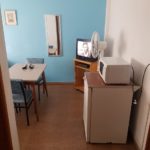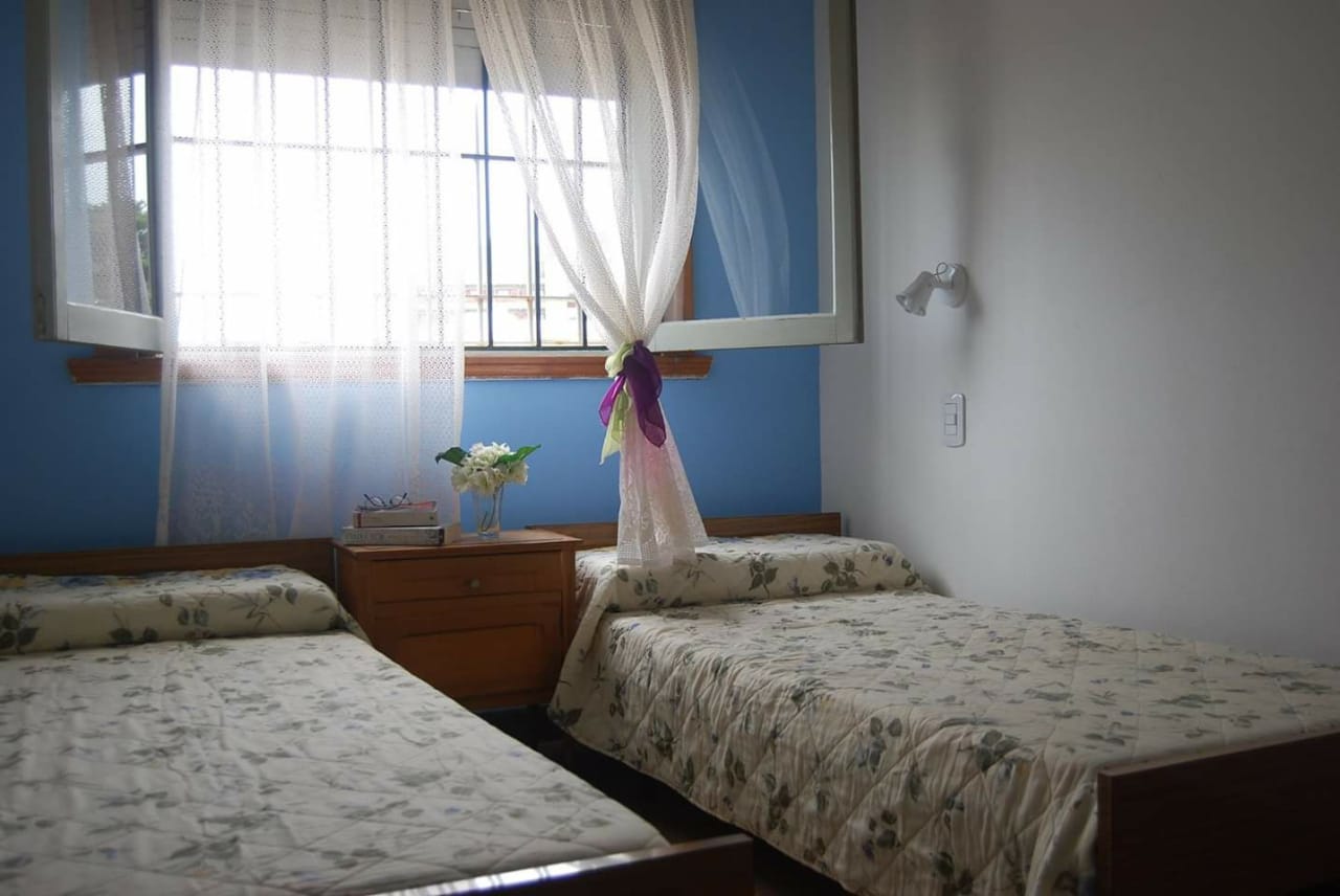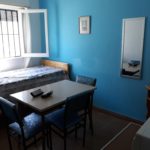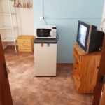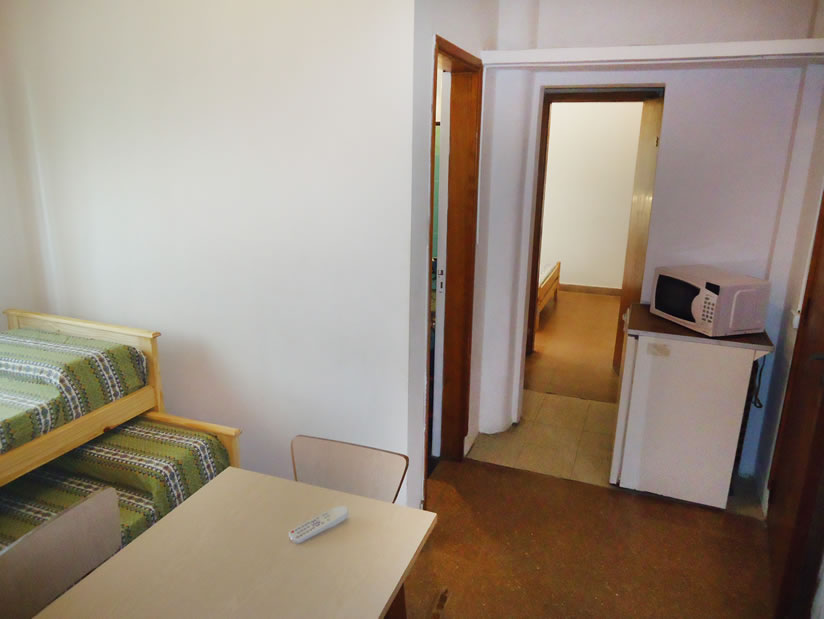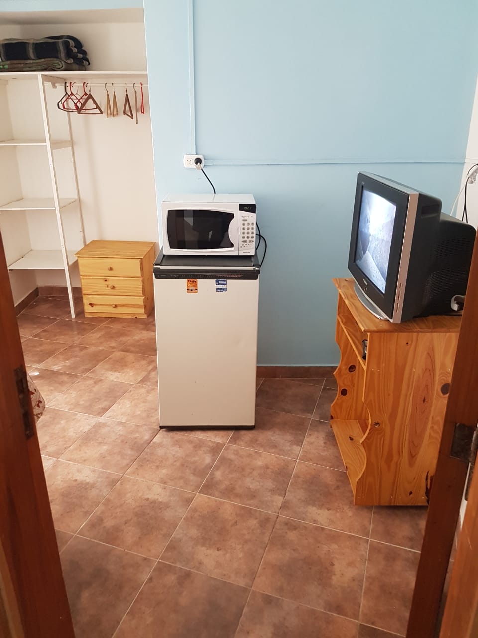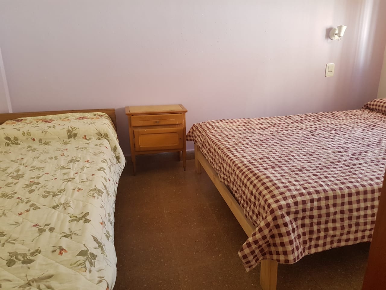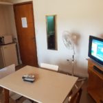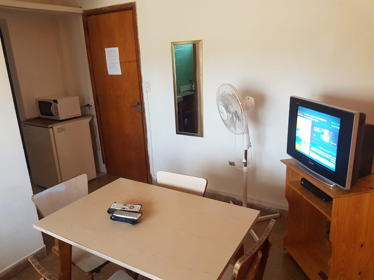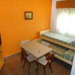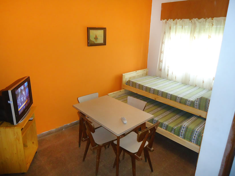 Dormitorio con cama matrimonial y comedor con camas simples superpuestas, acolchados, frazadas, baño completo, cocina 4 hornallas con horno, termotanque de alta recuperación, vajilla completa, heladera con congelador, microondas, ventiladores de pie en ambos ambientes, amplios placares y tv 21″ pantalla plana con Direct TV.